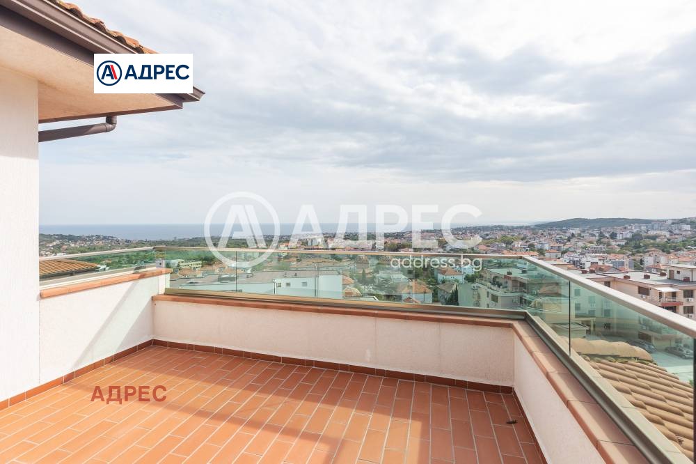 Многостаен апартамент, завършен до ключ, с морска панорама. Състои се от дневен тракт с излаз на тераса, три спални,втора тераса, баня с тоалет и коридор. Възможност за покупка на гараж - 21000 .