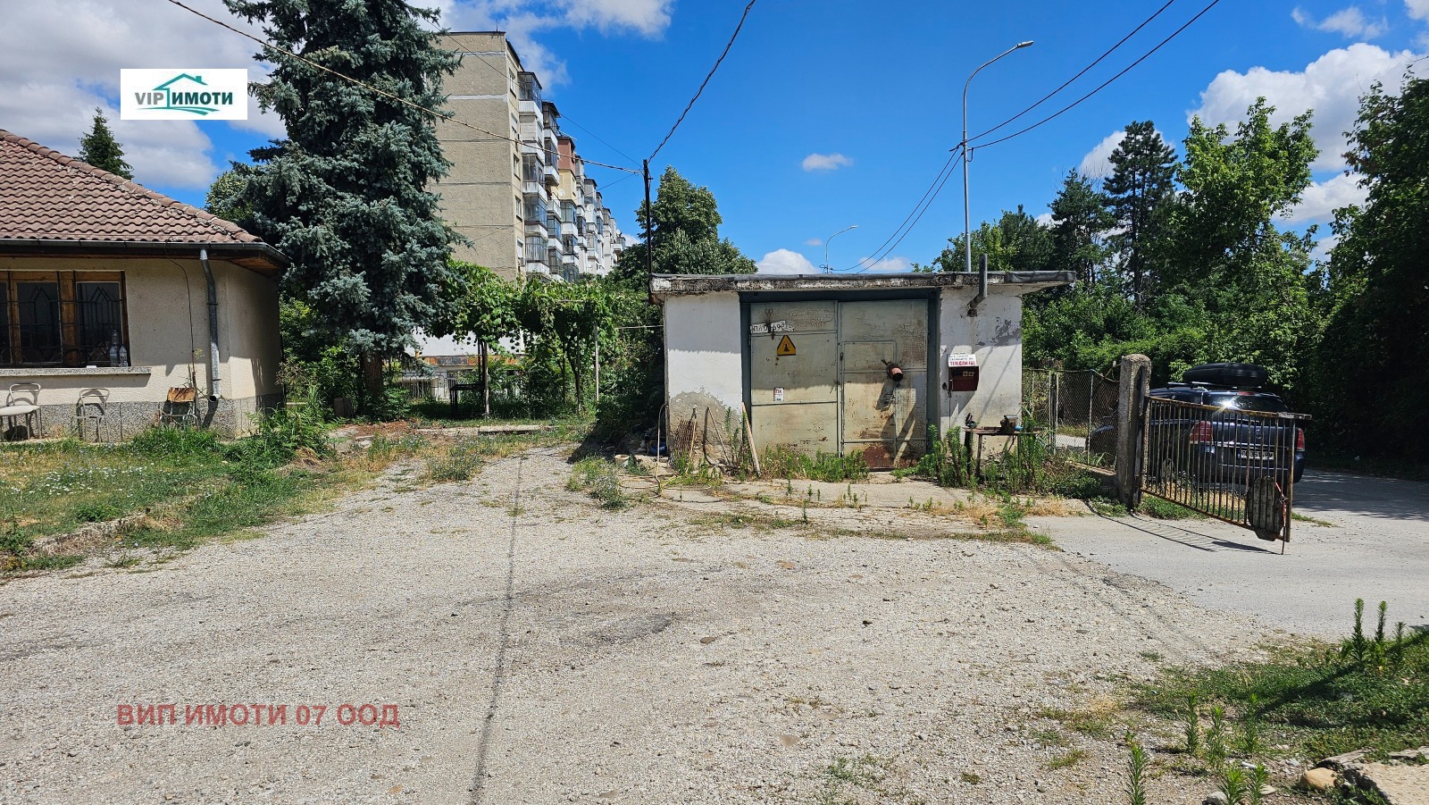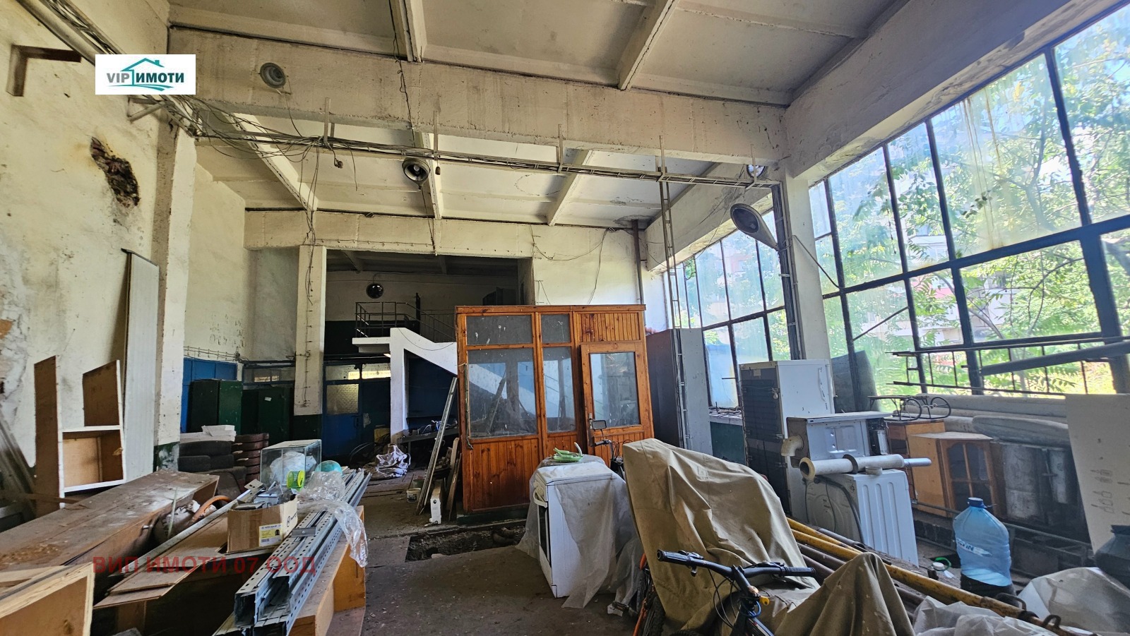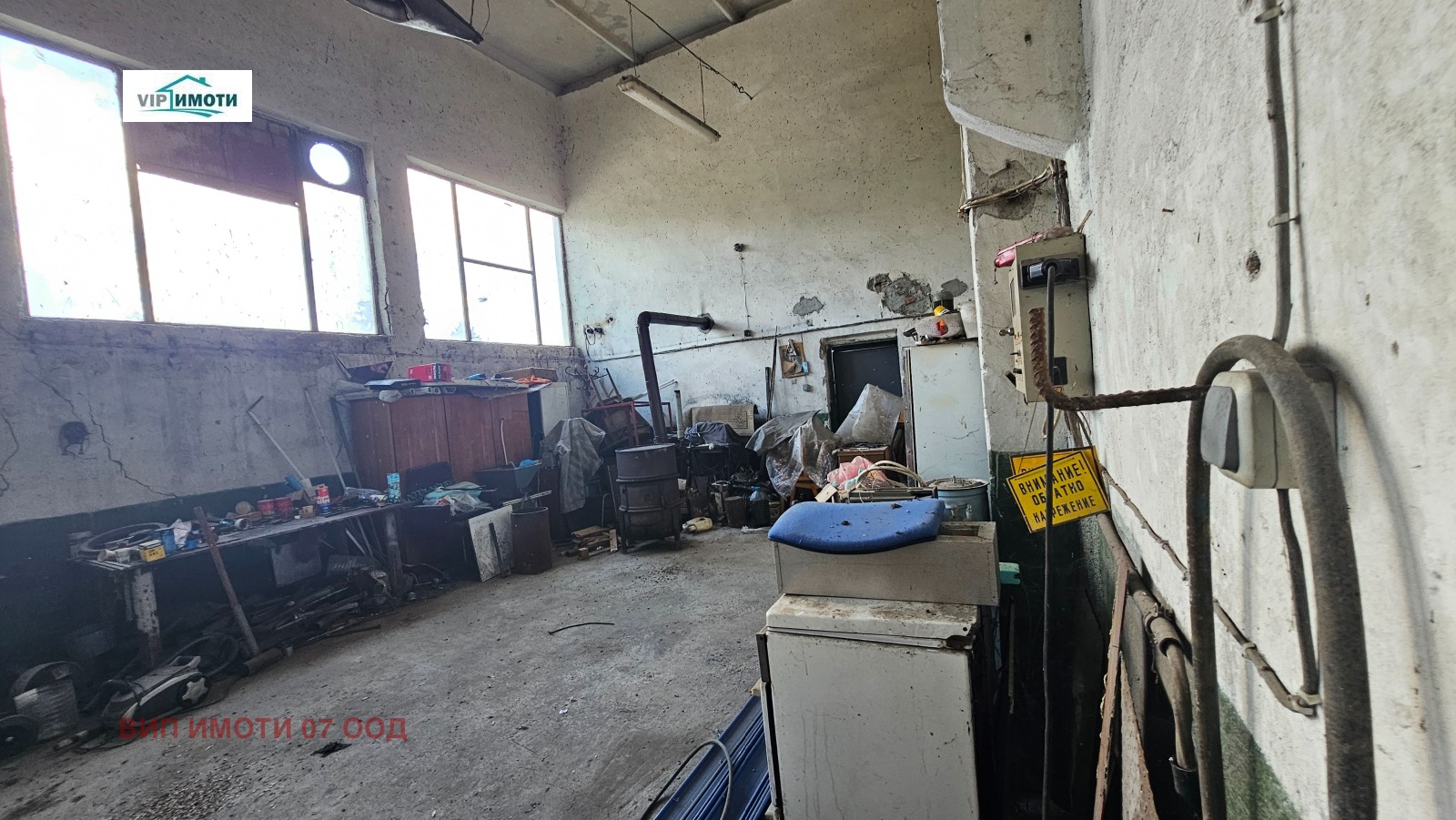 Голяма постройка с площ 444 кв.м, започваща с навес тип открит гараж. Покривът е изцяло реновиран. Разполага с ток, вода и канализация. Подходяща за склад, хале, производствена дейност или автосервиз.