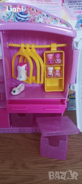 Новият сезон на Shopkins e вече тук! Хайде на пазар! Shopkins са супер сладки, малки герои, които живеят в ГОЛЯМ пазарен свят! Shopkins са стотици видове на всякаква тематика! Защото веднъж започнеш ли да пазаруваш – няма спиране! Събери цялата си фешън Shopkins колекция в този страхотен гардероб! Всички модни Shopkins обожават този гардероб с голямо огледало, в което да се оглеждат. Или въртящият се щанд и сладка закачалка, на които можеш да ги поставиш. Отвори разгъващото се крило и го превърни в стая за преобличане. Включва и щанд за обувки, както и две шкафчета за съхранение. Събери всичките и създай свой собствен Shopkins Свят!
