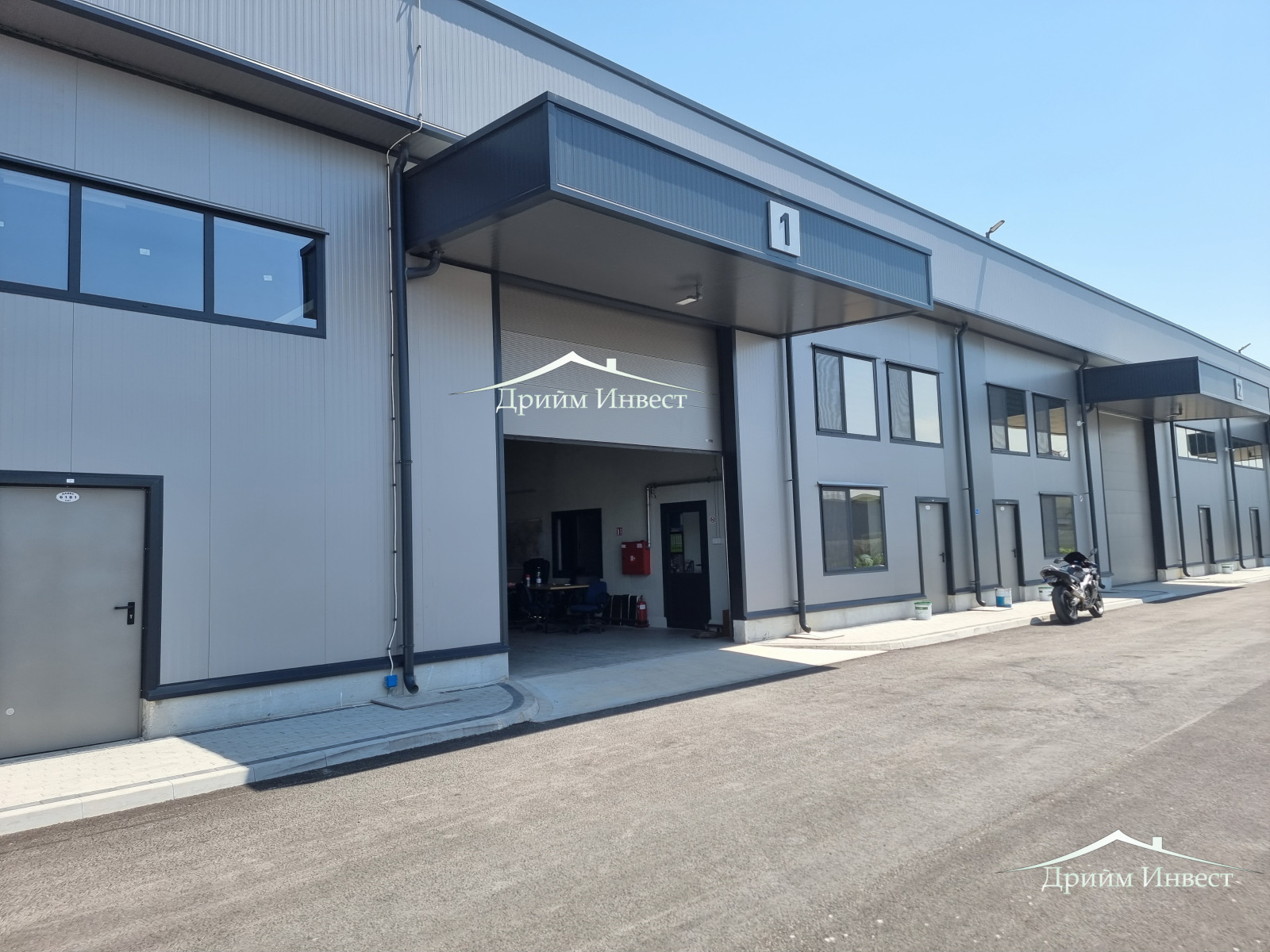 Термопанелно Хале подходящо за шоурум,склад,логистика.Представително излъчване, модерна визия, удобен достъп, възможност за ясно зониране на търговска и обслужваща част