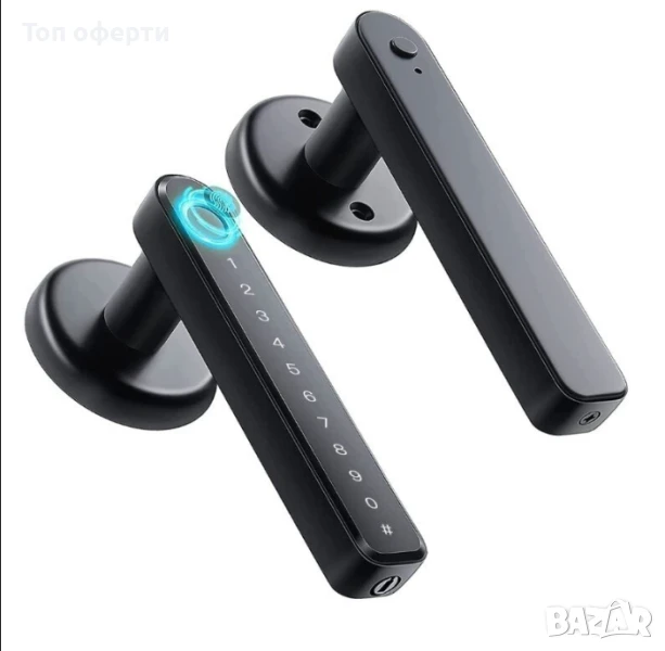 Интелигентна електронна брава, която може да се управлява чрез ПИН код, пръстов отпечатък или мобилно приложение.
