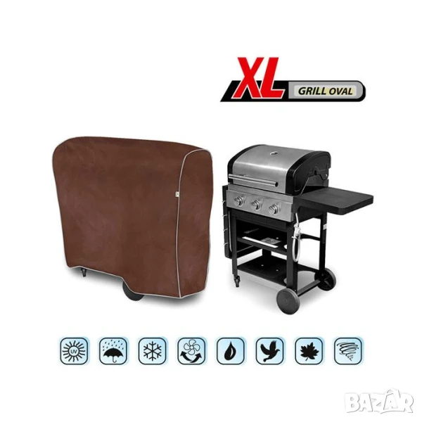 Водоустойчиво покривало за защита на градинския грил грил на дървени въглища или газ, съхраняван на открито, от неблагоприятните въздействия на околната среда.