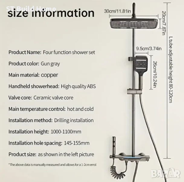 ✅ Горен душ: 30.48 см – покрива цялото тяло с плътен воден поток