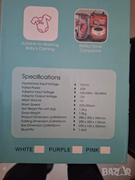 Тази портативна пералня работи със захранващ адаптер включен в комплекта.
