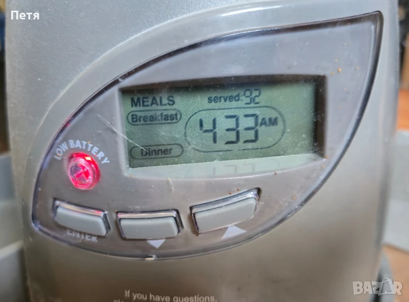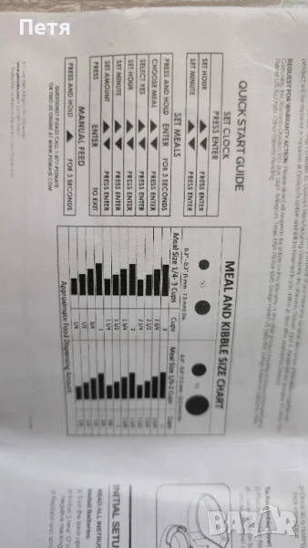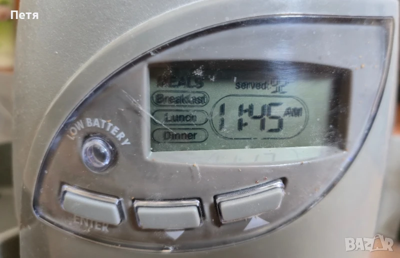 Продавам автоматичен диспенсър за суха храна за кучета и котки Trixie Le Bistro. Автоматична хранилка Trixie Le Bistro. В много добро състояние и с нормални следи от употреба. Налични са и инструкции за употреба на английски език. Предимства на Le Bistro: - лесно програмиране спрямо нуждите на домашния ви любимец - подходящ за суха храна - до 3 хранения на ден, в определени от вас часове - дози на храната между 60 и 480 ml - прозрачен контейнер с вместимост 2.5 kg - голям капак за лесно допълване - захранва се с 3 батерии тип 1.5V D - лесно почистване