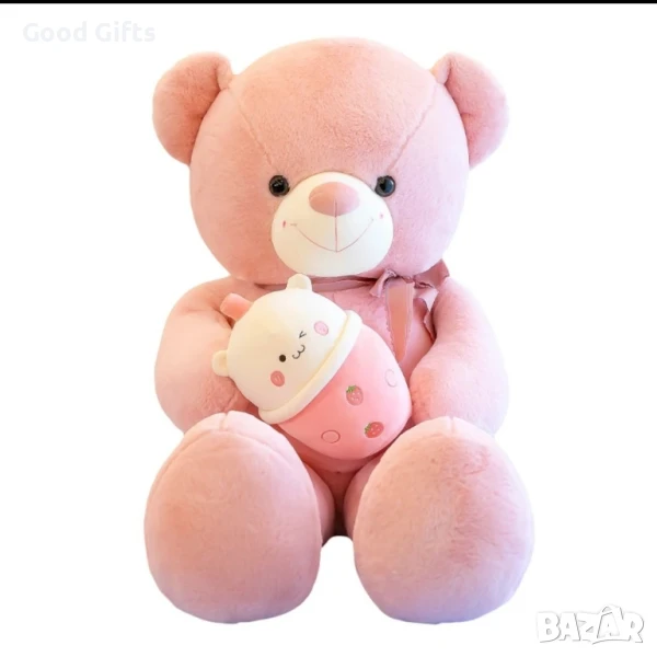 голямо плюшено мече 110см, розово плюшено мече, мече с шейк, плюшено мече с bubble tea, подарък за момиче, плюшена играчка 1 метър, сладко мече, романтичен подарък