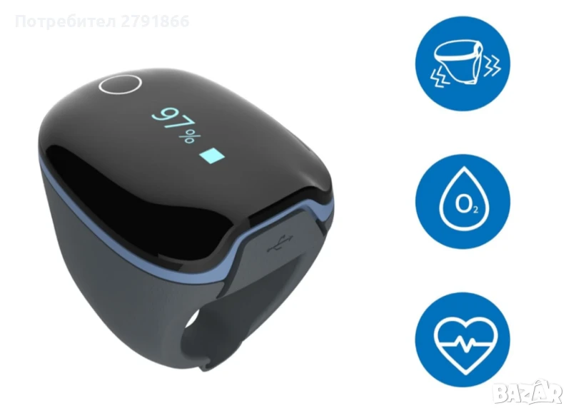 O2ring Bluetooth Smart пулсоксиметър пръстен за постоянно наблюдение на сърдечна честота, сатурация