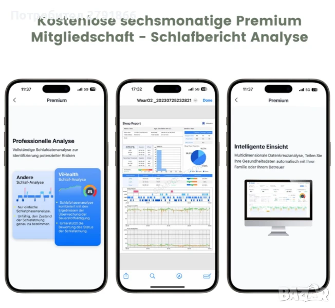 - Карта за анализ на съня - Този продукт съдържа 180-дневна карта за разширен анализ на съня, която отключва всички функции на съня.