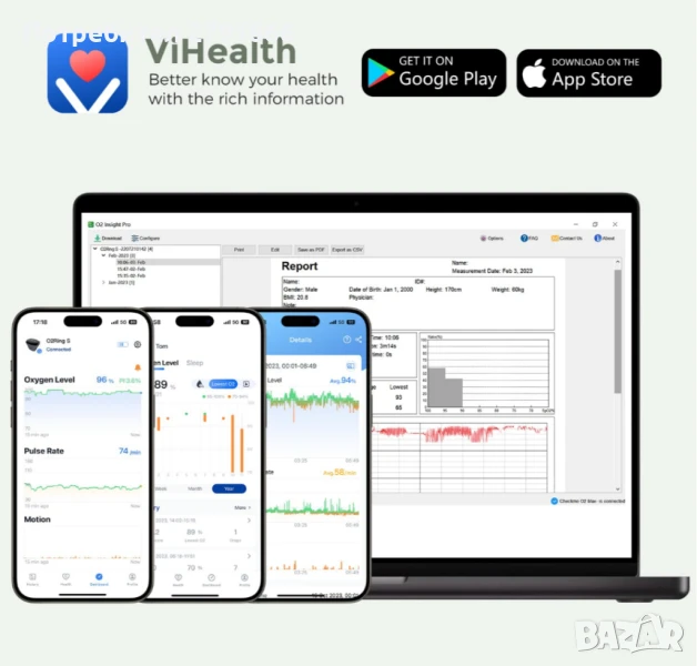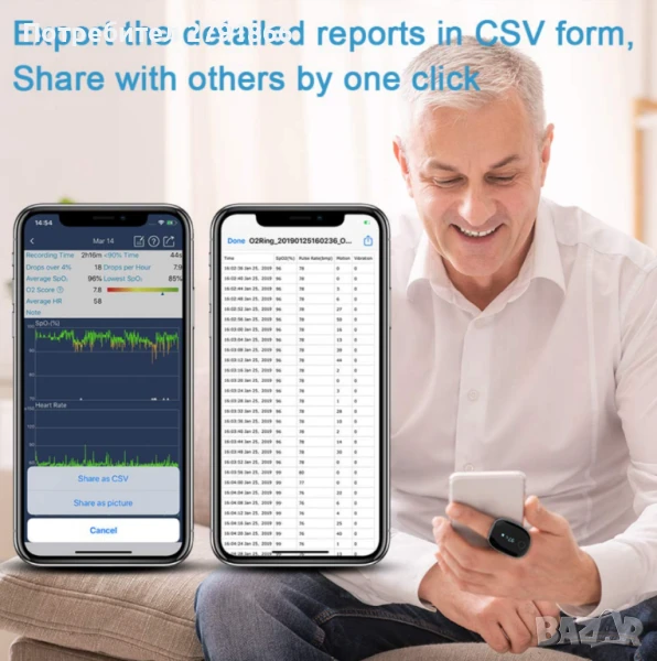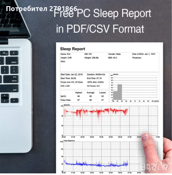 - Изтегляне на отчет - Нашият Bluetooth оксиметър за сън може автоматично да синхронизира данните от измерванията с приложението "O2 Insight Pro" на вашия компютър. Можете да изтеглите и отпечатате отчетите на вашия компютър без допълнително заплащане.