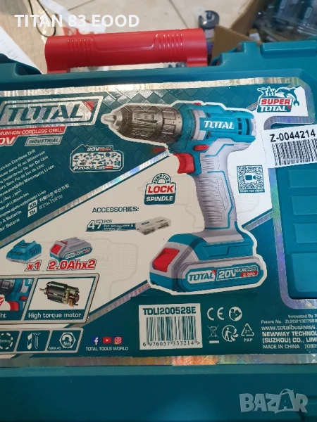 Акумулаторен винтоверт TOTAL Industrial, 20 V, 2 x 2.0 Ah Li-Ion, 45 Nm, + аксесоари