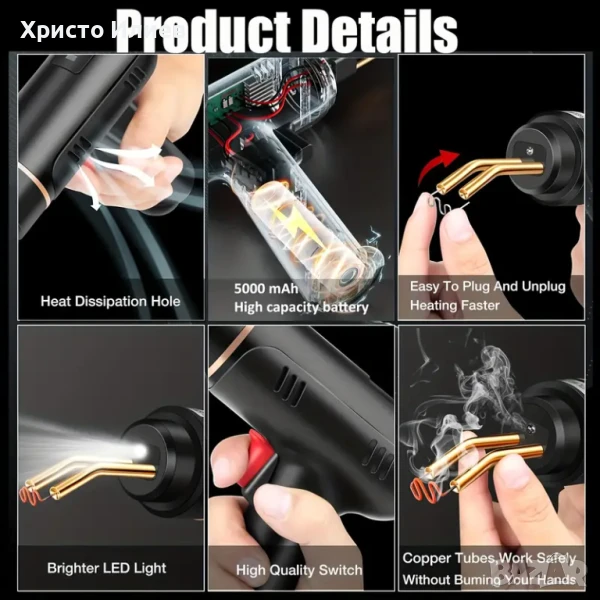 - Бързо покачване на температурата, 3 секунди бързо нагряване, заваряване без демонтаж.