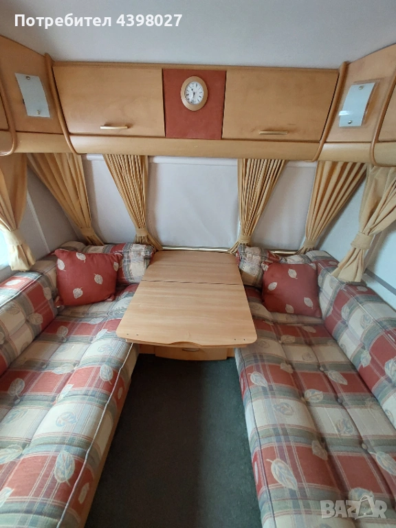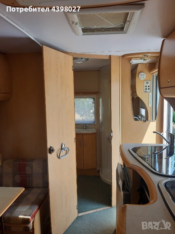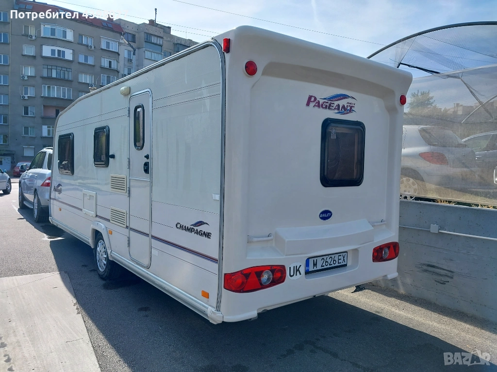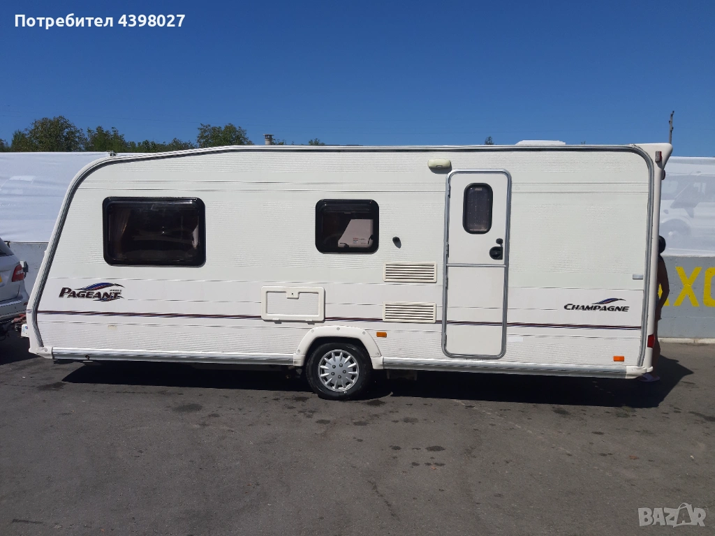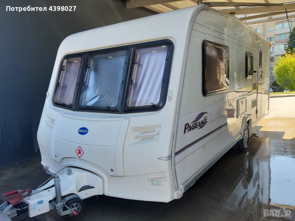 Bailey Pageant 2005 година 4/5 местна, дължина 7.16м височина 2.20м. Караваната се продава със съд за мръсна и чиста вода, газова бутилка, акумулатор, мотор мувер за по-лесно преместване и паркиране.Всичките уреди работят без проблем на газ и ток.Регистрирана всичко палатено.За повече информацич и оглед град Монтана 0884880590