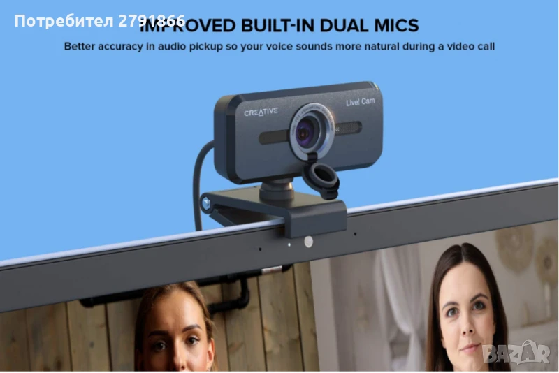 - ПОДОБРЕНИ ДВОЙНИ ВГРАДЕНИ МИКРОФОНИ ЗА ЕСТЕСТВЕНО УЛЪЧВАНЕ НА ГЛАС - Подобрените двойни вградени микрофони на Creative Live! Cam Sync 1080p V2 са способни на по-добра точност при улавяне на звука, така че гласът ви звучи по-естествено по време на видео разговор; почти толкова естествено, колкото ако разговаряте лице в лице. Можете също така да говорите с комфортна сила на звука, без да се налага да напрягате гласа си, и все пак да бъдете чути ясно.