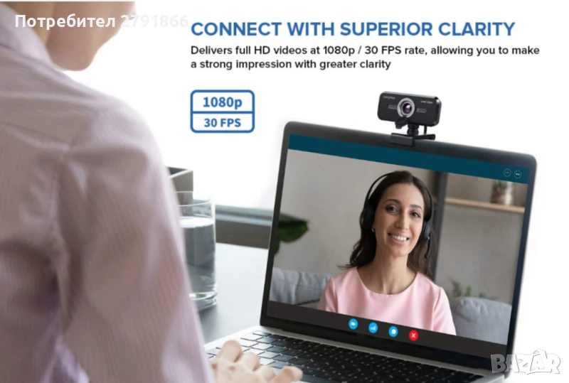 Full HD уеб камера с автоматично заглушаване и шумопотискане за видео разговори