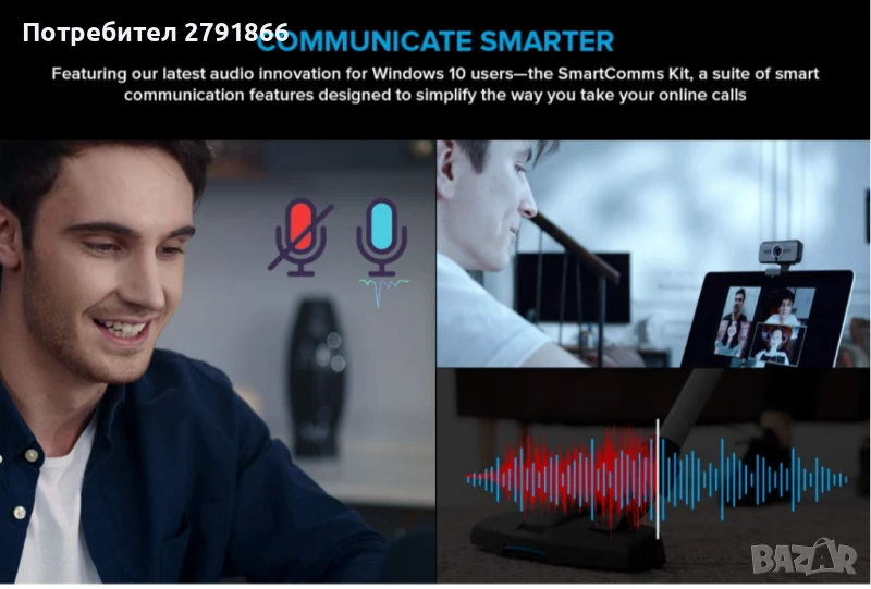 Нашият комплект SmartComms е разработен, за да реши тези проблеми с работата от вкъщи за потребителите на Windows 10 – като опрости начина, по който общуваме онлайн, чрез набор от интелигентни комуникационни функции, включително VoiceDetect , който автоматично изключва звука, докато говорите, и NoiseClean-out , който премахва статичния фонов шум по време на разговор.