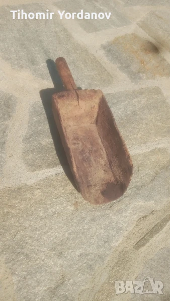 Стара дървена лопатка,в реално автентично състояние.За украса и декорация.Размери от снимките.
