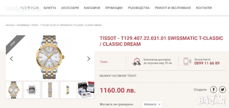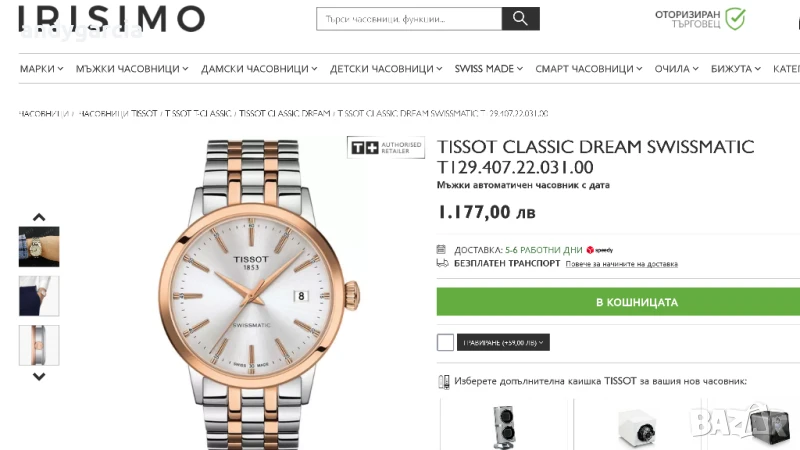 TISSOT CLASSIC DREAM SWISSMATIC T129.407.22.031.00 чисто нов часовник с 2 години гаранция