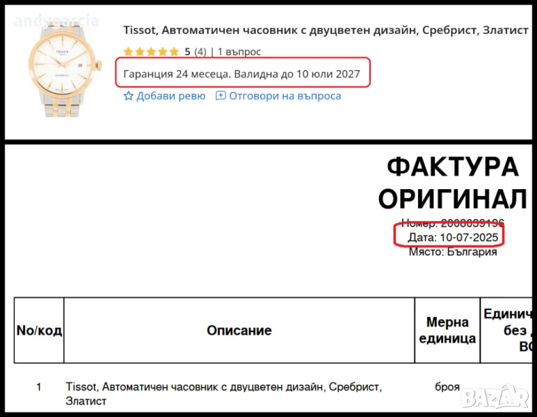 100% оригинален, качил съм снимка от сайта на Тисо със справка по сериен номер - ”....VQPF”