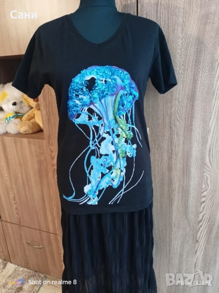 Черна тениска октопод М,Л- цена 15 лв