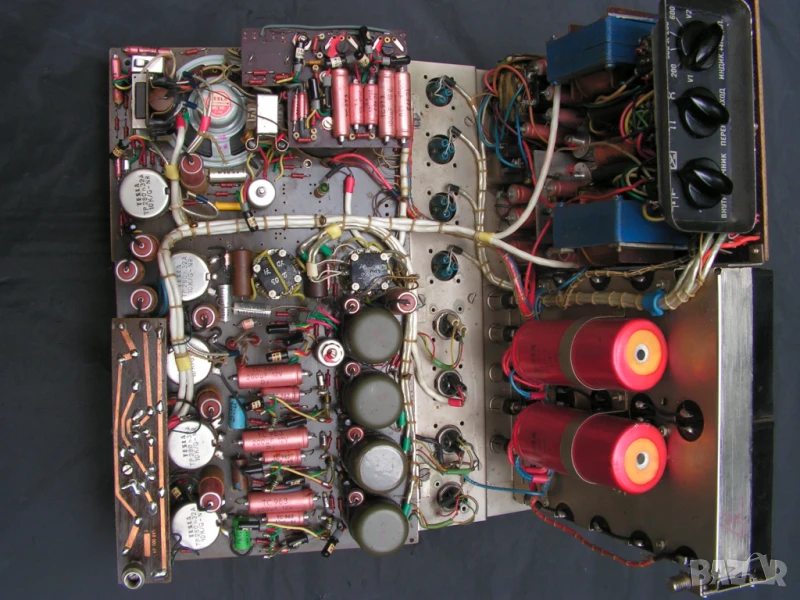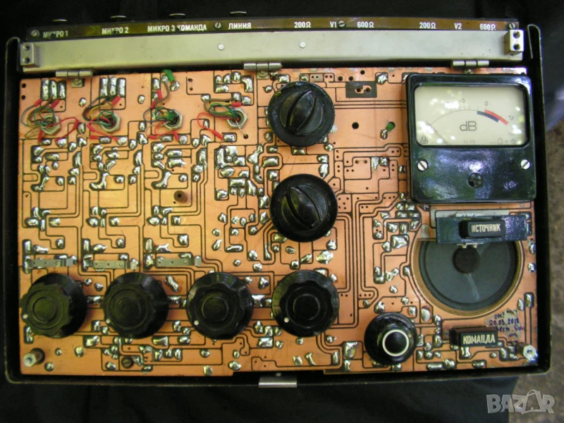 на напрежението му. Има типичните за времето си въртящи се потенциометри, като