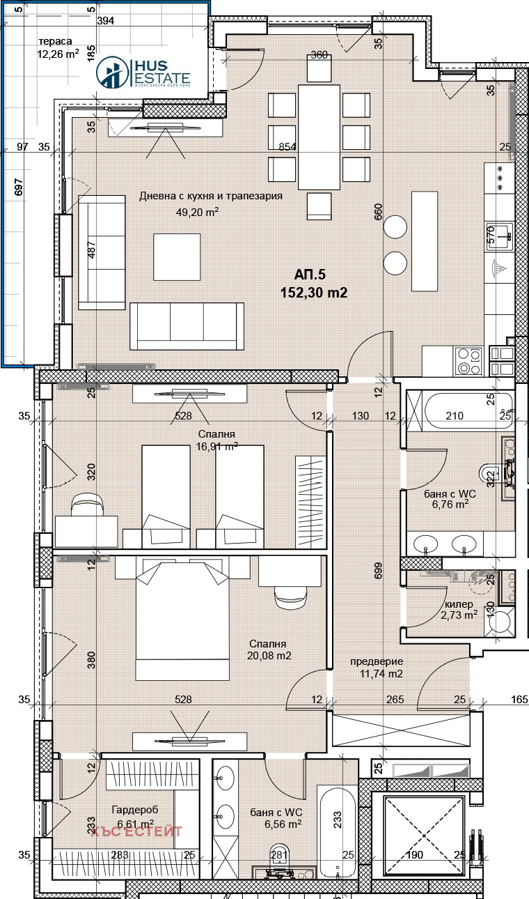 194 броя апартамента с 1, 2 и 3 спални