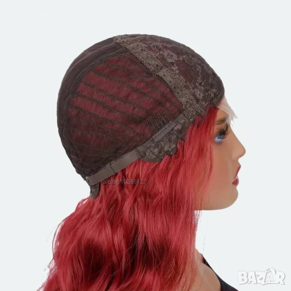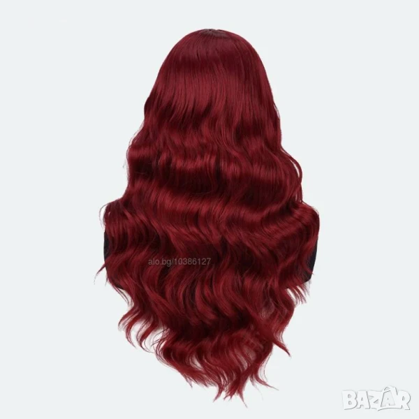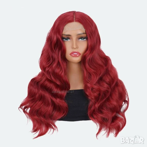 Тъмно червена бордо синтетична перука с дантела → Обява 51119899