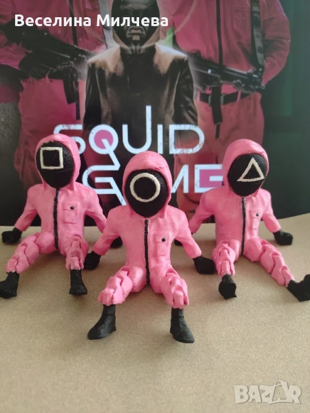 Представям на Вашето внимание фигурки от SQUID GAME ръчно оцветени. Размерите им се виждат на снимките Цена 10 лв бр. Подходящо за подарък за рожден ден,имен ден,момче,момиче,жена,мъж,подходящ за бюро,маса,или като декорация Лично предаване за гр.Русе,за другите градове по куриер с отстъпка от доставката