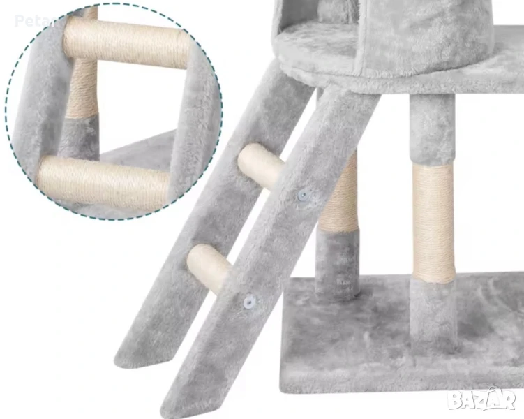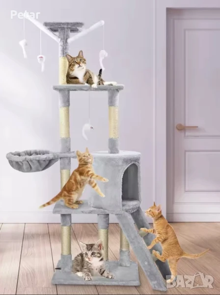 Множество уютни места: Две кацалки, едно легло с хамак и един голям котешки пещерен апартамент, тази котешка кула може да позволи на 1-4 котенца да живеят заедно