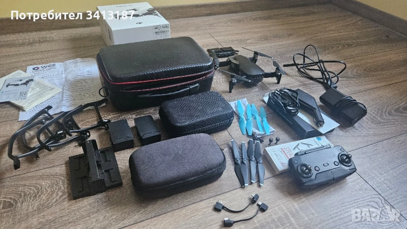 Както може да видите на снимките има много неща които ще ви дам с дрончето. Всичко е добре освен задния сензор, просто ми пише грешка, обаче буквално не виждам разлика. 2 батерии. Док станция за зарежлане на 4. Батериите държат около 8-10 минути. Продавам го защото събира прах. Иначе е добра покупката. Макс съм летял 240м на горе и 1300м на дължина(двете са отделно). При интерес ми пишете, питайте.