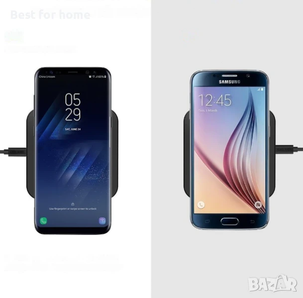 Вградени 2 намотки, които ви позволяват да зареждате мобилни телефони вертикално или хоризонтално.