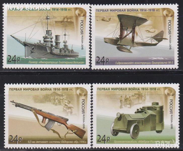 Чисти марки (4) Оръжия от Първата световна война 2016 от Русия.