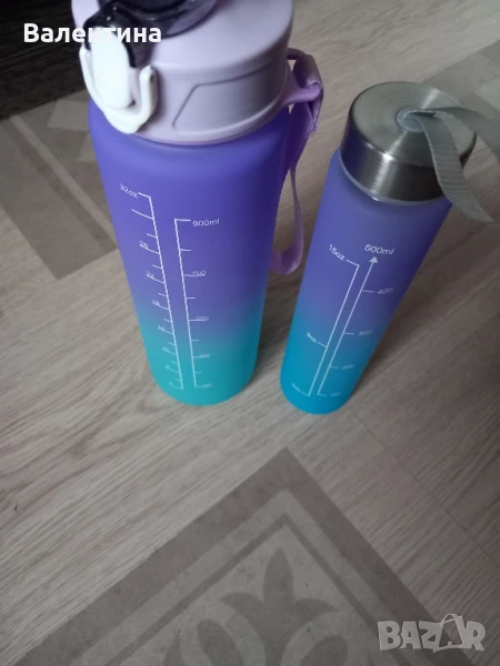 2 броя бутилки за вода.Нови.750 и 280 мл.Цена за 2 те 7 евро Изпращам с Еконт или Спиди с преглед.