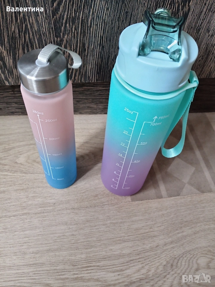 2 броя бутилки за вода.Нови.750 и 280 мл.Цена за 2 те 7 евро Изпращам с Еконт или Спиди с преглед.