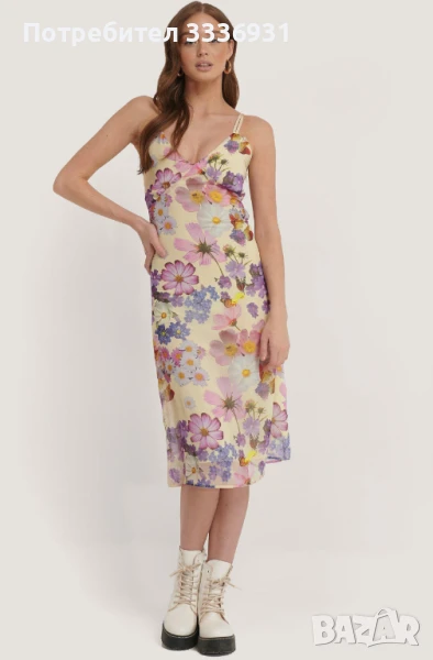 Рокля с флорален мотив и регулируеми презрамки Na-KD, размер 36, дължината е 118 см