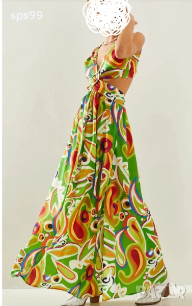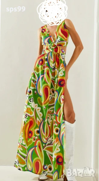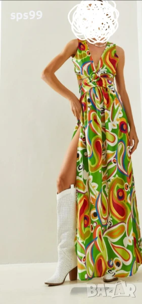 Продавам свежа лятна дамска рокля в пъстрата зелено-жълта-коралова гама. Стилна и удобна за носене. Подходяща за различни поводи през летния сезон.