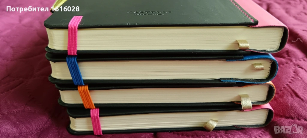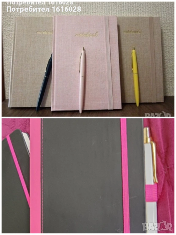 1. Тефтери с ластик, с връзка разделител.за страниците от качествена хартия в цвят Екрю, с широки редове.