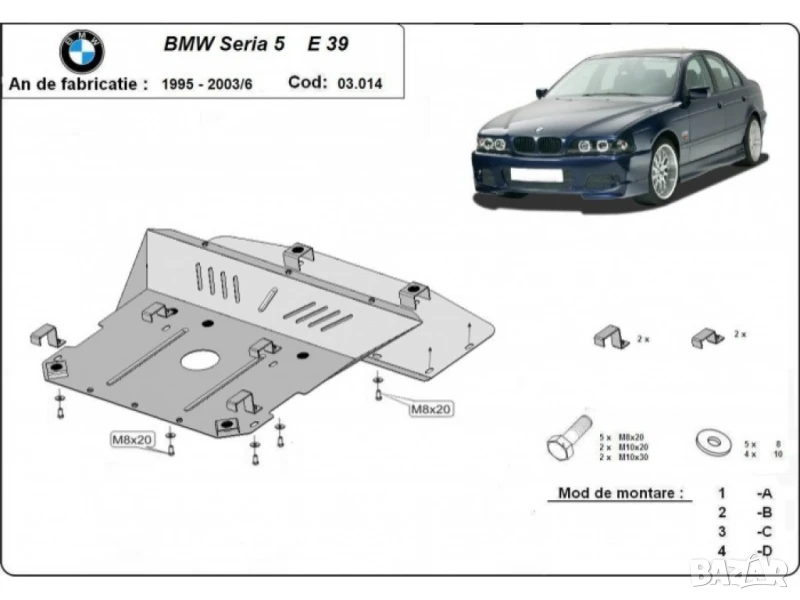 Метална кора под двигател BMW Seria 5 E39 1995г – 2003г