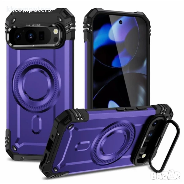 Google Pixel 9 Pro / Pixel 9 Magnetic Case Lens /Kickstand PC + TPU Удароустойчив Ring Holder2 Калъф и Протектор Описание