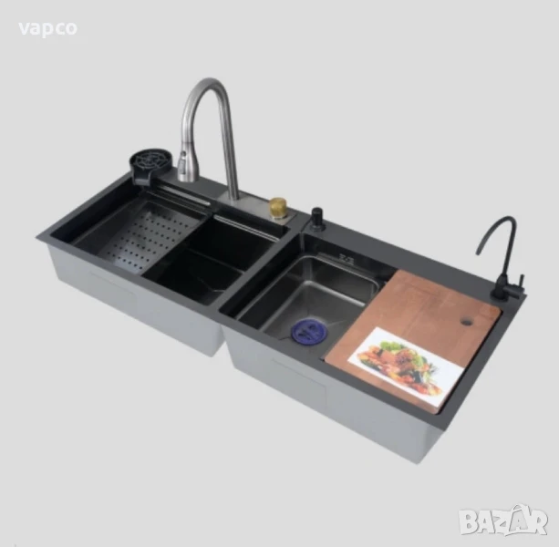 Мултифункционална кухненска мивка с две корита