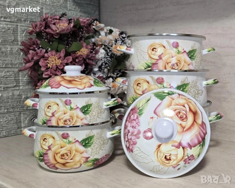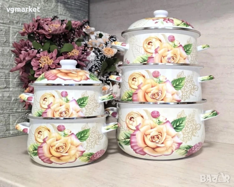 Kомплект емайлирани тенджери с декор 5 бр.
