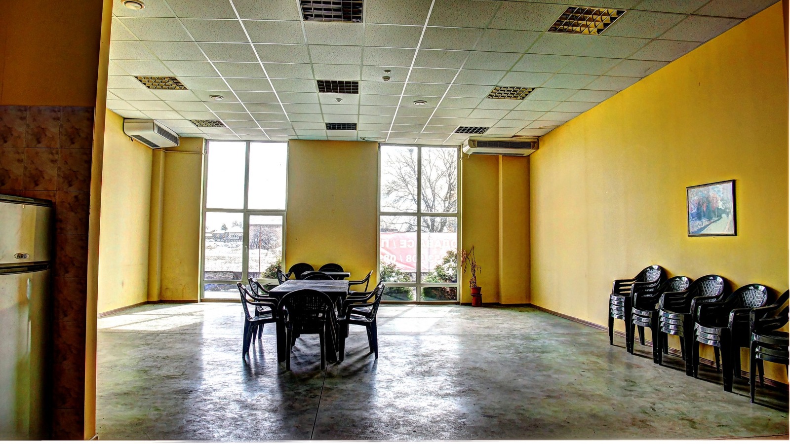 Състои се от 2 работни зали с обща площ 1050м2, които могат да бъдат обединени, височина 4,74м-6,50м; два склада съответно 98 и 140м2, сервизни и обслужващи помещения и офиси с обща площ 535м2, шоурум 30м2.