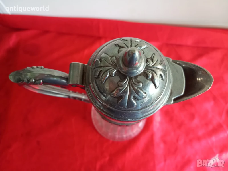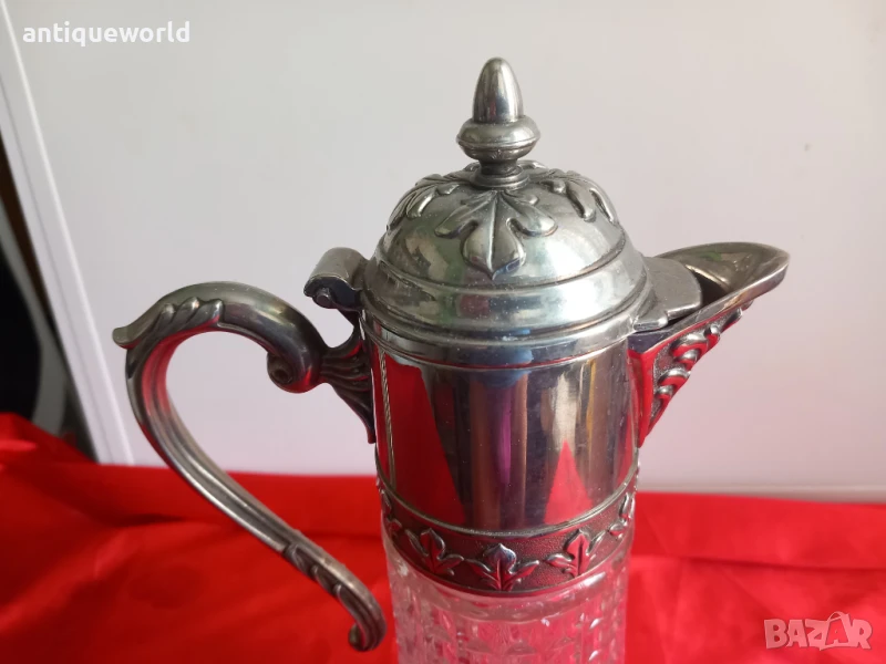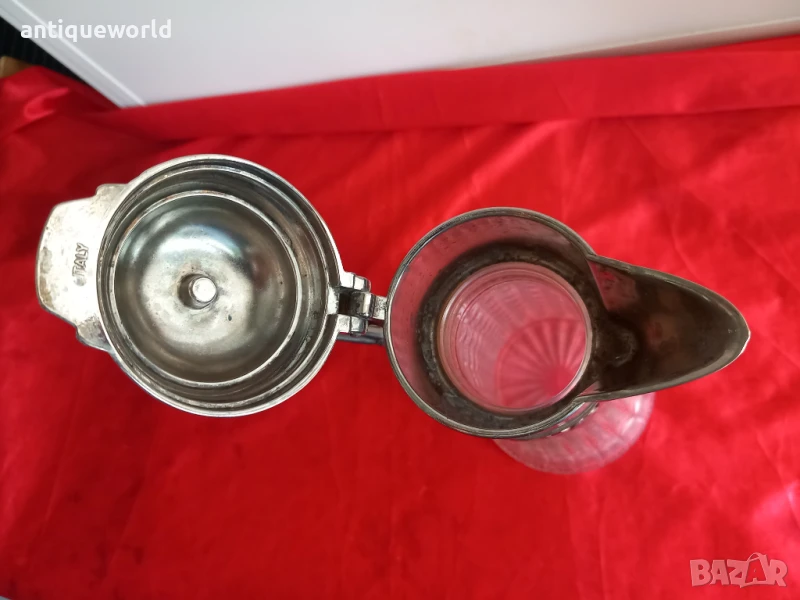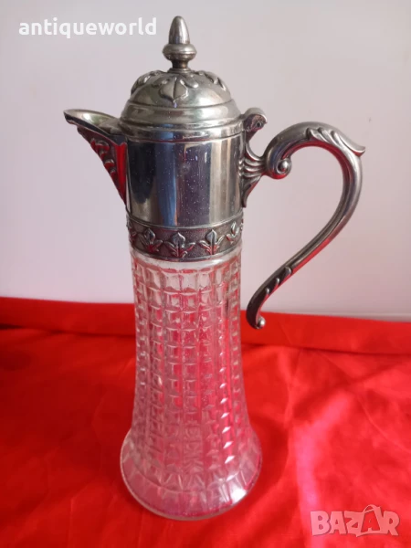 Много Красива Италианска Стара Стъкена ,Кристална Кана ,Гарафа , ПосребренаМасивна и здрава.