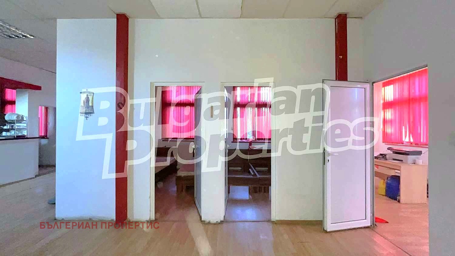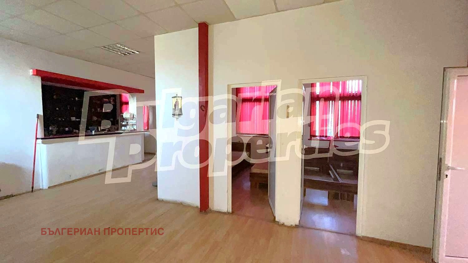 Магазинът се състои от търговска зала и склад. С отделен вход са още офис с преход към помещение с обособени в него две стаи, бар плот, баня с тоалетна.