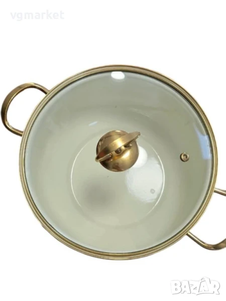 дръжка. Двете златисти дръжки улесняват преместването и носенето на