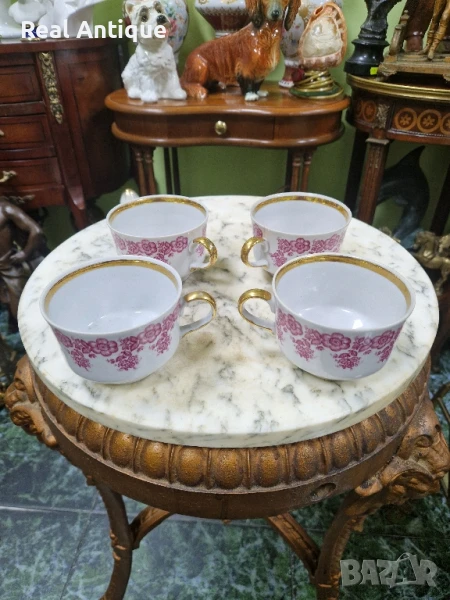 Продавам 4 броя антикварни руски съветски порцеланови чаши за чай в много добро състояние трите четвъртата е с пукнатини. Налични маркировки. Посочената цена е за 4- те броя. Работя с всички куриери.