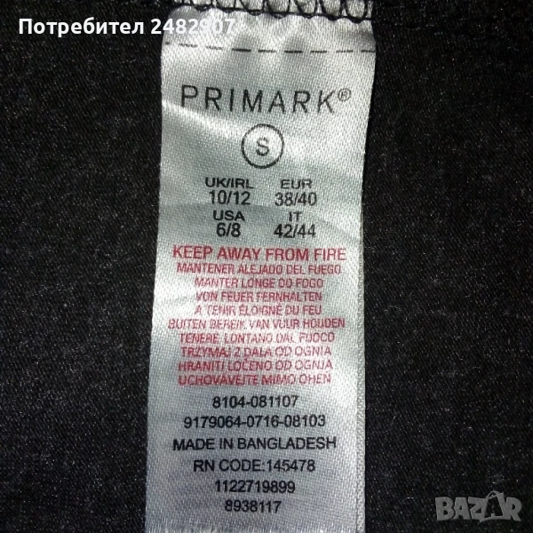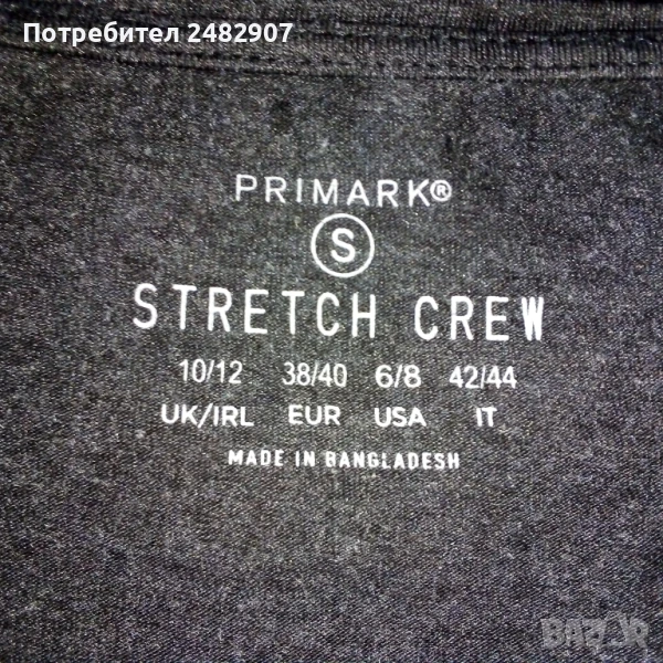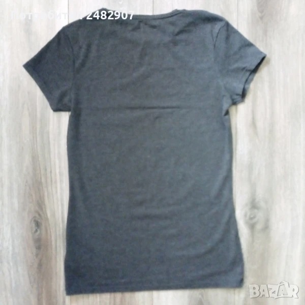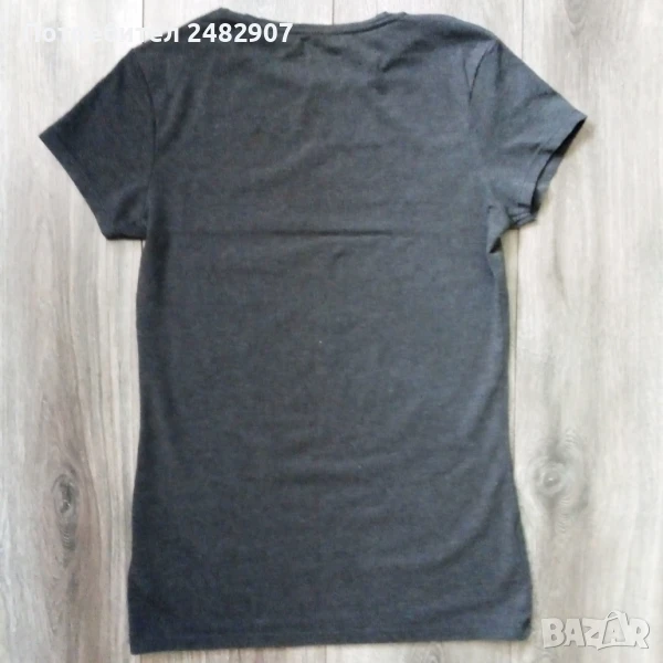 Дамска тениска с къс ръкав, цвят - сив меланж, размер S. Съдържа 60 % памук, 35 % полиестер и 5 % еластан. Ширина с раменете - 36 см, ширина под мишниците - 43 см, ширина в долната част - 43 см, дължина от рамото до долу - 66 см, дължина на ръкава от рамото - 13 см, ширина на ръкава в долната част - 14 см. Много запазена, почти не е използвана.