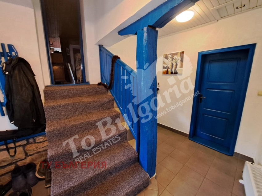 ID:21232 Ту Бългерия - недвижими имоти има удоволствието, да Ви предложи тази прекрасна къща с голям двор от 3000кв.м. и панорамна гледка, разположена в живописното с.Славейково. Жилищната площ се състои от три спални, всекидневна /трапезария с кухня, две бани с тоалетни и хол. Имотът е изцяло ограден с каменен дувар, в него има каменна плевня. Отоплението е на ток и камина на дърва. Селото се намира само на 15км от гр.Дряново и на 35км от гр. Велико Търново, населено от много млади семейства и чужденци.
