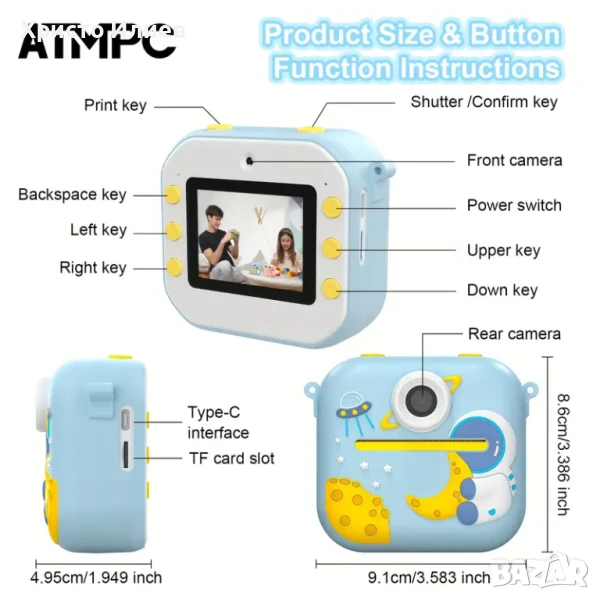 【Незабавен печат】Разполага с технология за печат без мастило, която позволява на децата да отпечатват любимите си снимки веднага след заснемането им.