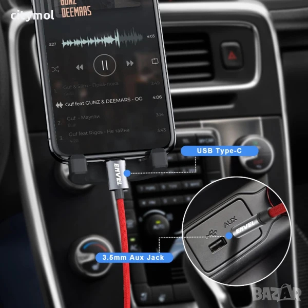 Кабел ENVEL USB C към AUX, найлонова оплетка, адаптер за слушалки тип C към 3,5 мм, аудио стерео за