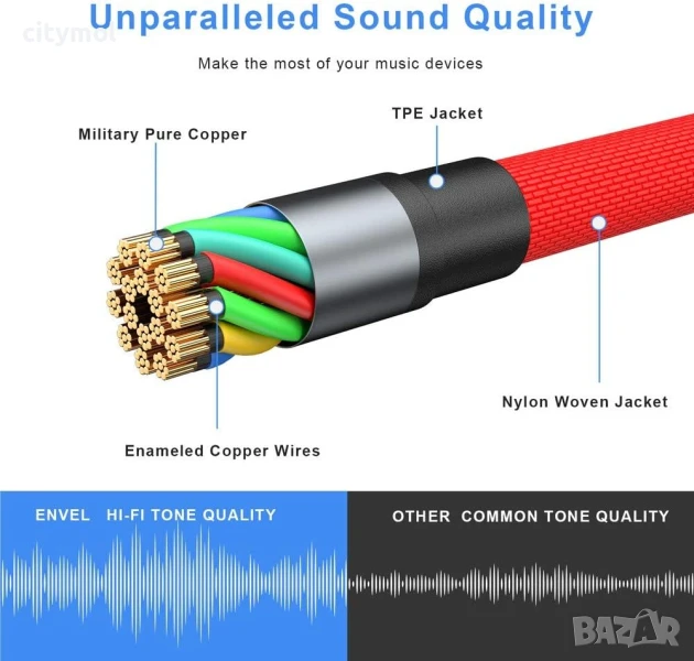 - Кристално качество на звука: Полираните 24-каратови позлатени конектори осигуряват надеждност и елиминират загубата на сигнал и евентуалния шум, предлагайки ясен и висококачествен стерео звук на вашите устройства.